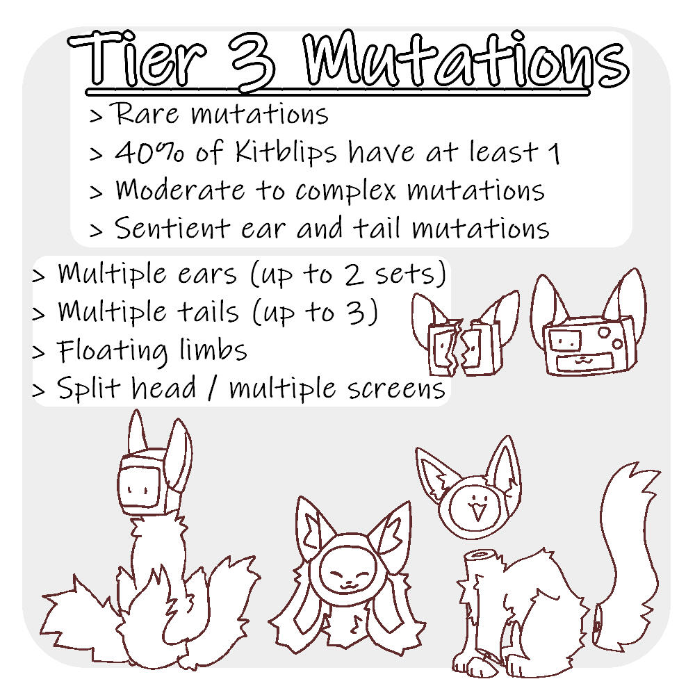 Kitblips with no ears cannot hear and kits without tails have trouble balancingTier 2 Mutations